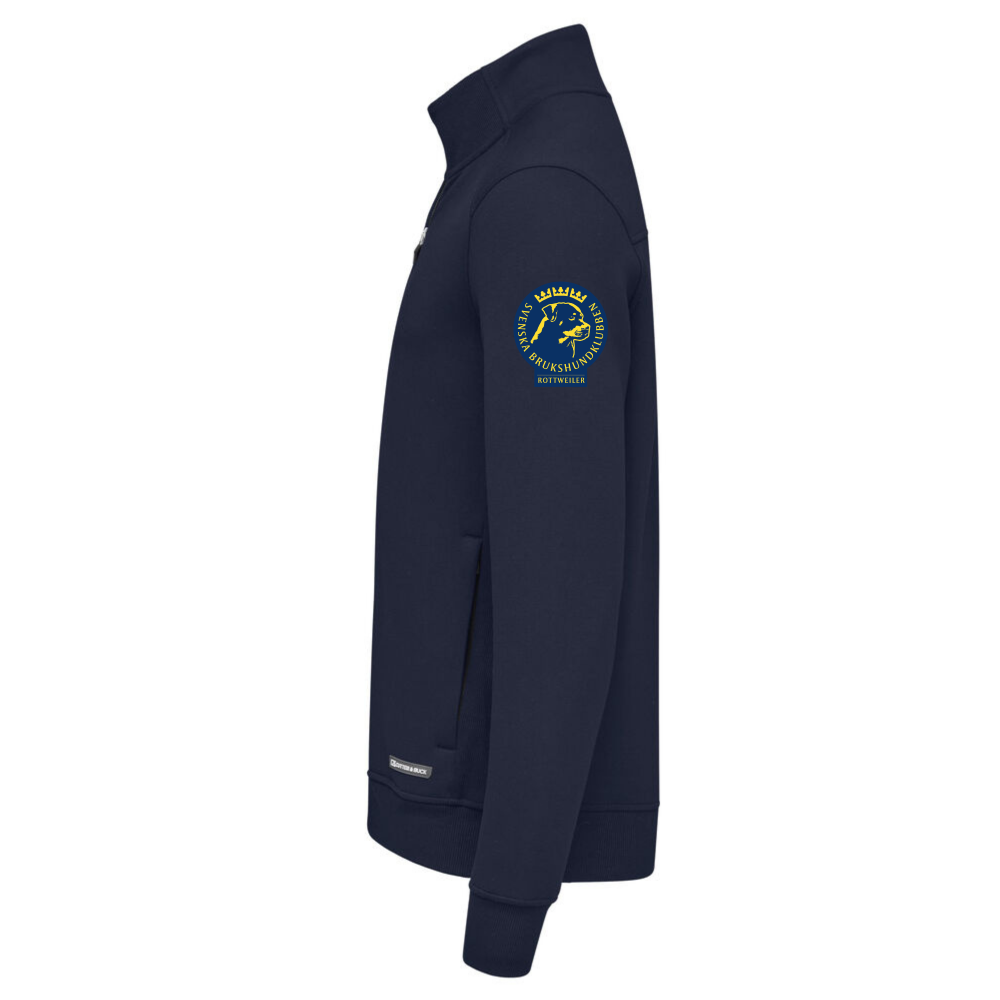 Levereras med Svenska Rottweilerklubbens logga placerad på vänster ärm, synlig även vid användning av träningsväst.